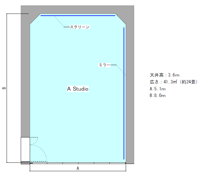 ※間仕切りのパーテーションを開放し、B Studioと接続して使用可能。